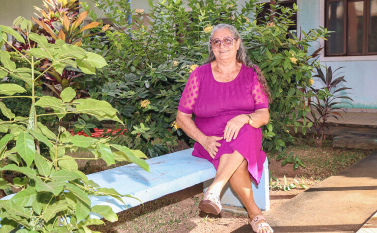 A paciente Maria Aidê Alves Carvalho, de Redenção/PA, faz tratamento oncológico há mais de sete anos. Nesta semana, está em Palmas para dar continuidade às sessões de radioterapia. “A Casa de Apoio é de extrema importância para nós. Os funcionários sempre nos recebem muito bem e estou feliz por poder ficar aqui”, ressalta.
