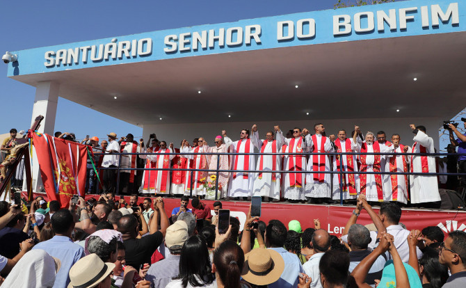 “É uma grande alegria presidir esta missa da romaria, um momento de fé e devoção que une milhares de romeiros em gratidão a Deus e ao Senhor do Bonfim. Somos todos iguais perante Deus e que Ele nos dê forças para permanecermos aqui praticando a fé”, declarou o bispo José Moreira.